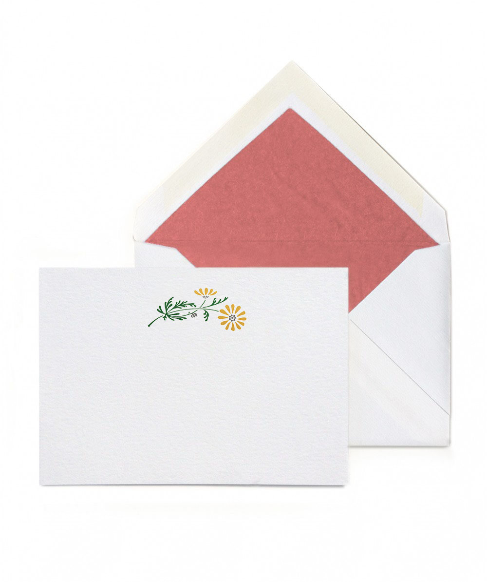 Write your most buzz-worthy notes on this Bumble Bee stationery from our Summer Collection. The design is hand-engraved in steel and stamped in orange ink on heavy archival stock, the envelopes are lined in buttercup tissue.