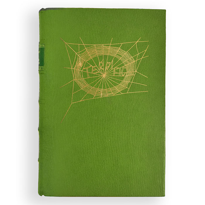 The Full-Leather “TERRIFIC” Edition is bound in full green Moroccan leather and features handmade paste paper endsheets letterpress printed with a spider web design. The front of the book features a gold stamp of Garth Williams’ illustration of Charlotte’s “Terrific” spider web. The top edge of the book is gilded and each copy has hand-sewn headbands. It is presented in a suede-lined clamshell box, and each copy is individually numbered and signed by the publisher.