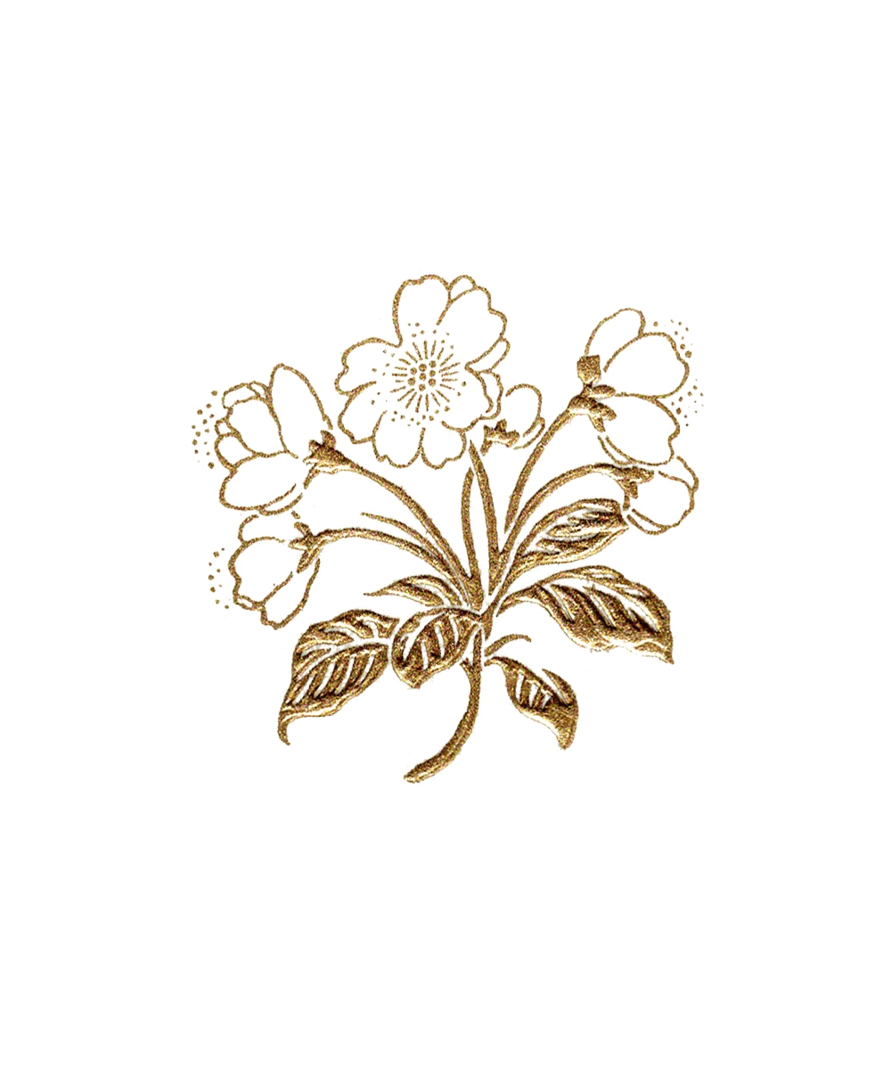 Transform your stationery with this classic, elegant flower. The motif is printed with metallic gold ink and each envelope is lined with peacock tissue paper.