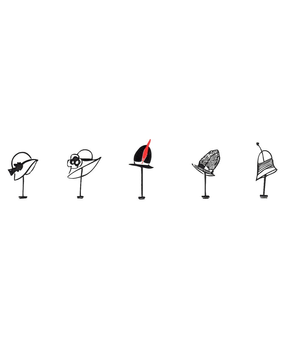 – Hats Motif in Black and Scarlet