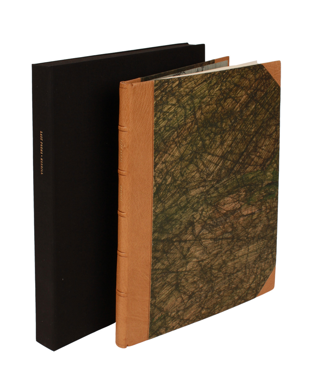 Thornwillow Press is proud to present this collection of the last poems James Merrill finished before his death, published here for the first time. James Merrill, who once declined to become poet laureate, was always the laureate of poets. His untimely death in 1995 at the age of sixty-eight left a tragic void among those who knew and loved him. J. D. McClatchy, long time friend of Merrill, himself an eminent poet and editor of the Yale Review, writes in his introduction that each of these seven poems begins “with a sensation… a sense of possibility” that moves the reader through a “collage of circumstances” and “towards some larger idea of itself.” Last Poems is letterpress printed directly from the type on handmade paper created for this volume. The frontispiece contains a hand-printed photogravure portrait of James Merrill by Mariana Cook. The copies are bound in tan Moroccan goatskin and handmade paste-paper, and are presented in a velvet-lined traycase. The edition is limited to 185 copies and is signed by Mariana Cook, J. D. McClatchy, and the publisher.