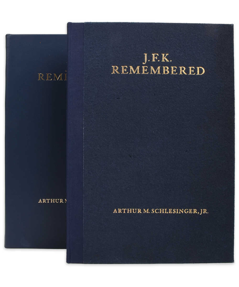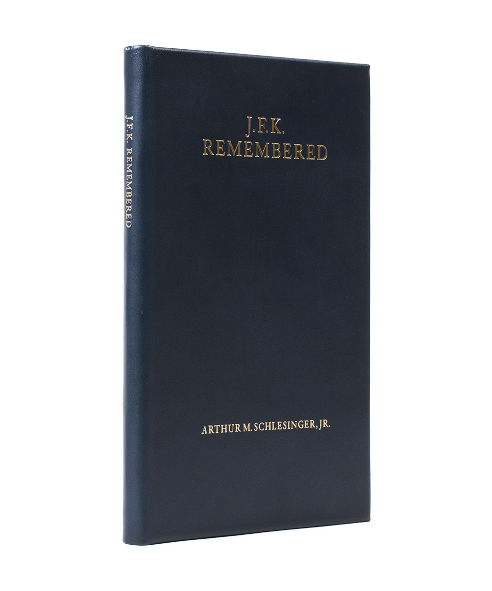 J.F.K. Remembered, published in 1988, commemorates John F. Kennedy on the 25th Anniversary of his untimely passing. As a close friend of the Kennedy family, Schlesinger honors his friend’s life and political legacy by offering a new perspective on his time in office, ended too soon. This rare edition, one of Thornwillow’s early publications, is out of print.