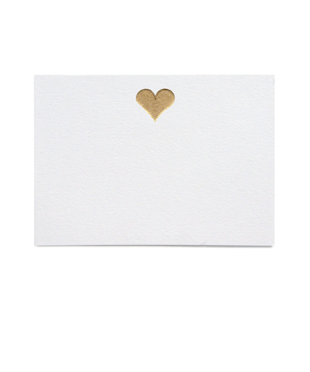 Heavy archival stock Place Cards with the romantic Gold Heart motif. Our centennial sized flat cards can be used as escort or seating cards for weddings, dinners, holiday parties, corporate events, office parties, and more. The Gold Heart motif is printed in metallic gold ink with genuine engraving.