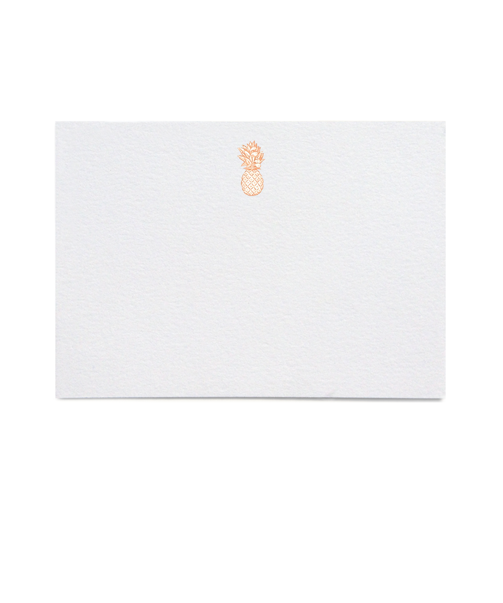 Heavy archival stock Place Cards with the carefree Pineapple motif. Our centennial sized flat cards can be used as escort or seating cards for weddings, dinners, holiday parties, corporate events, office parties, and more. The Pineapple motif is printed in sienna ink with genuine engraving.