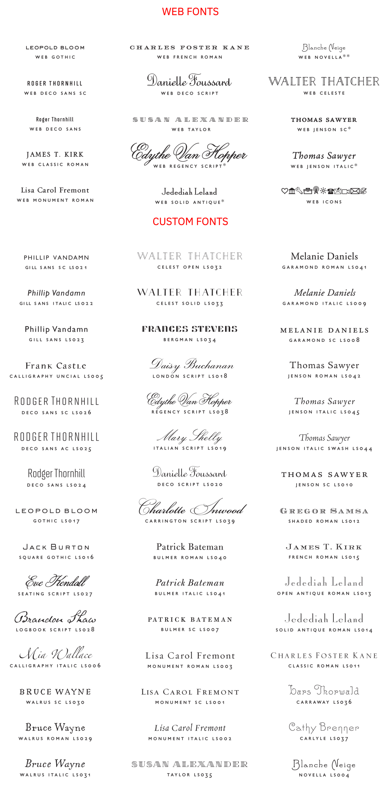 Interested in a custom font not available here? Call us at the press (845) 569-8883